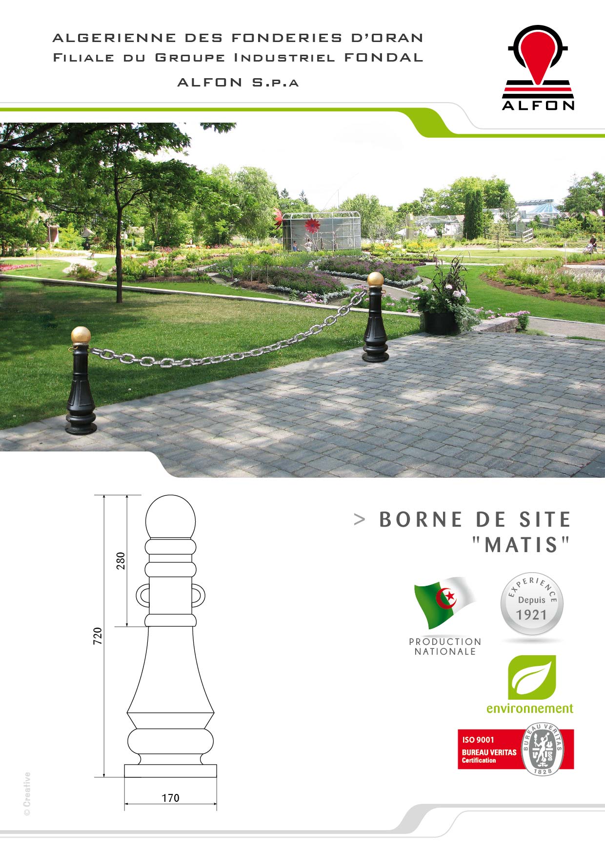 - Nombre d’éléments : (02) assemblés par vis BTR - Poids total : 51Kg - Hauteur totale : 720m/m - Longueur totale : 170m - Epaisseur moyenne des parois : 30m/m - Matière : Fonte à graphite lamellaire à haute résistance à la corrosion