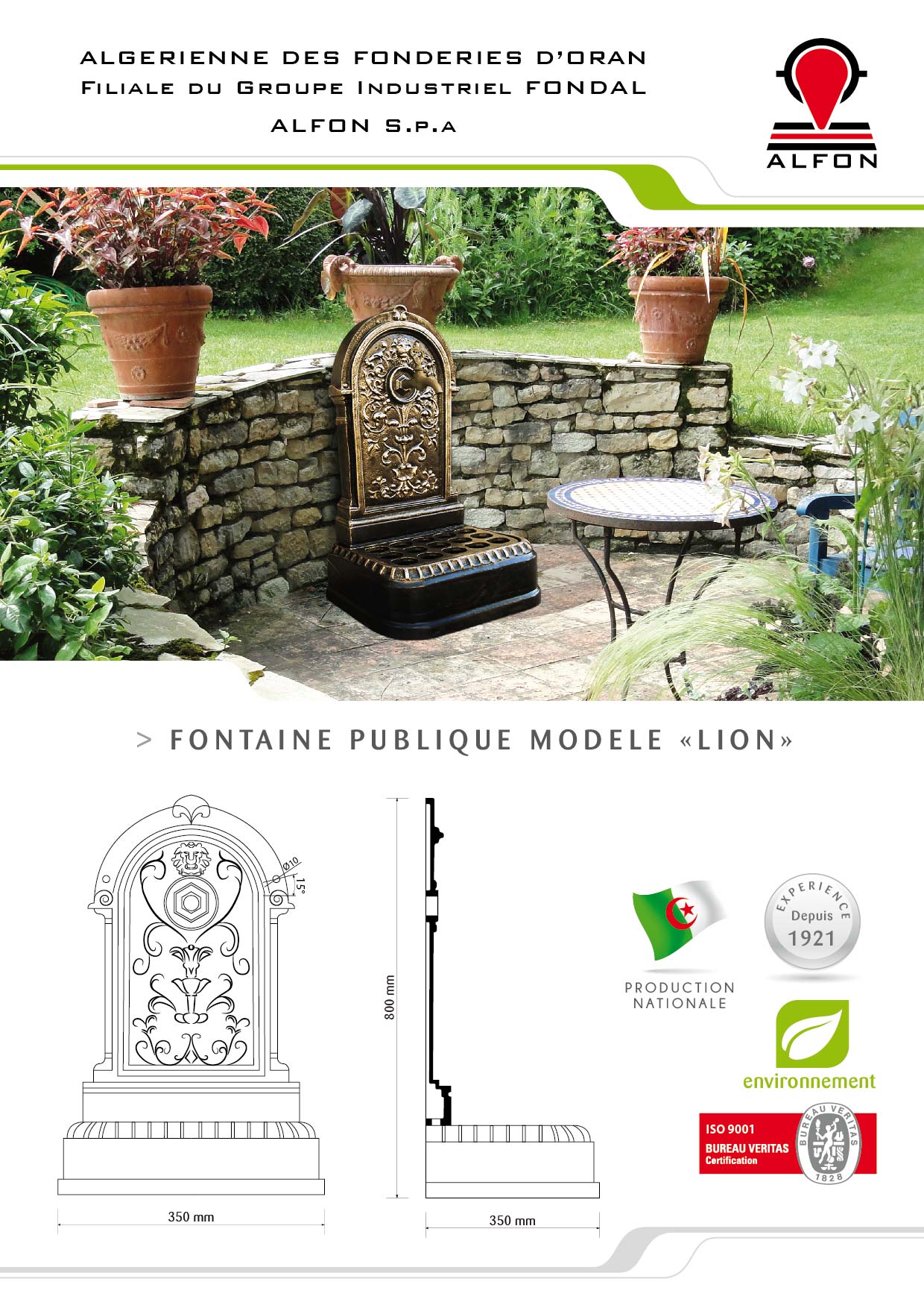 - Nombre d’éléments : (03) assemblé par vis HMS Caractéristiques géométriques de l’ensemble : -Poids total : 94 kg -Hauteur : 800mm -Largeur : 530mm -Epaisseur des parois : de 8 a 12m/m -Matière : Fonte graphite lamellaire haute résistance à la corrosion.