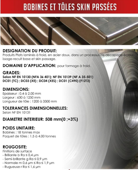 Produits plats laminés à froid en acier doux, dans un processus de décapage écrouissage-recuit base et skin passage.
